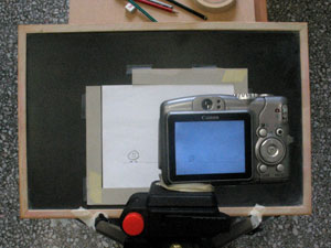 Πριν αρχίσω τη φωτογράφιση θα ασχοληθώ λίγο με τον φωτισμό των σχεδίων μου. Θα πρέπει να βεβαιωθώ ότι δεν υπάρχουν σκιές πάνω στο χαρτί από αντικείμενα του δωματίου, από τον τρίποδα ή και από μένα. Αν έχω τη δυνατότητα, μπορώ να φωτίσω από το πλάι τα σχέδια μου με ένα φωτιστικό (ή ακόμα καλύτερα με δύο φωτιστικά από δεξιά και αριστερά). Προσέχω το φως να πέφτει ομοιόμορφα πάνω στο χαρτί μου.